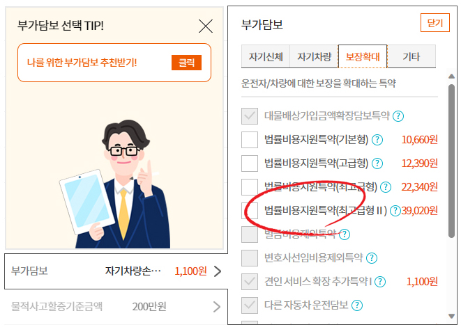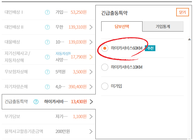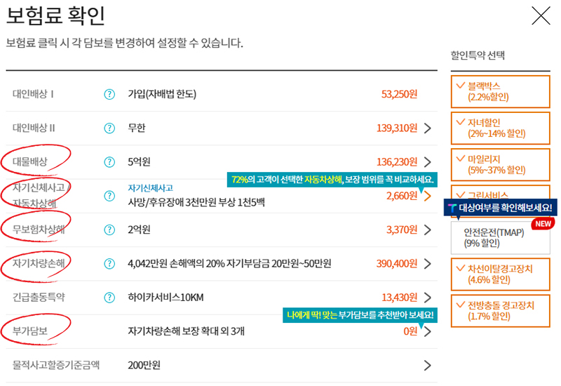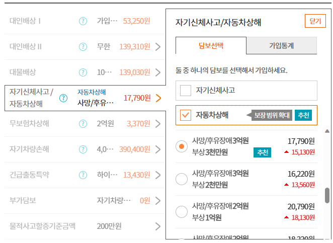 4) 자동차 보험 담보 설정하기 (가장 중요)