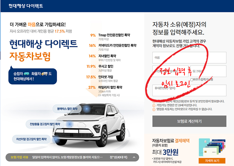 현대해상 다이렉트 자동차 보험 홈페이지 접속